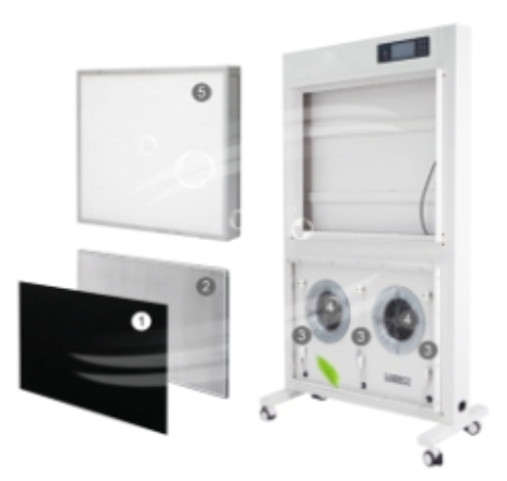 The efficiency of the H13 HEPA filter is more than 99.97% for 0.3 µm dust in the air.