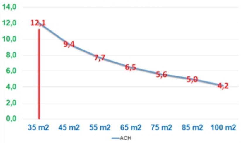 Unit Guardian APD-S700L mampu menghisap udara kotor dan membuang sebanyak 12 kali (ACH=12) volume ruang dalam 1 jam pada ruangan dengan luas 35 m2 dan dengan asumsi tinggi ruangan 2.8 m.